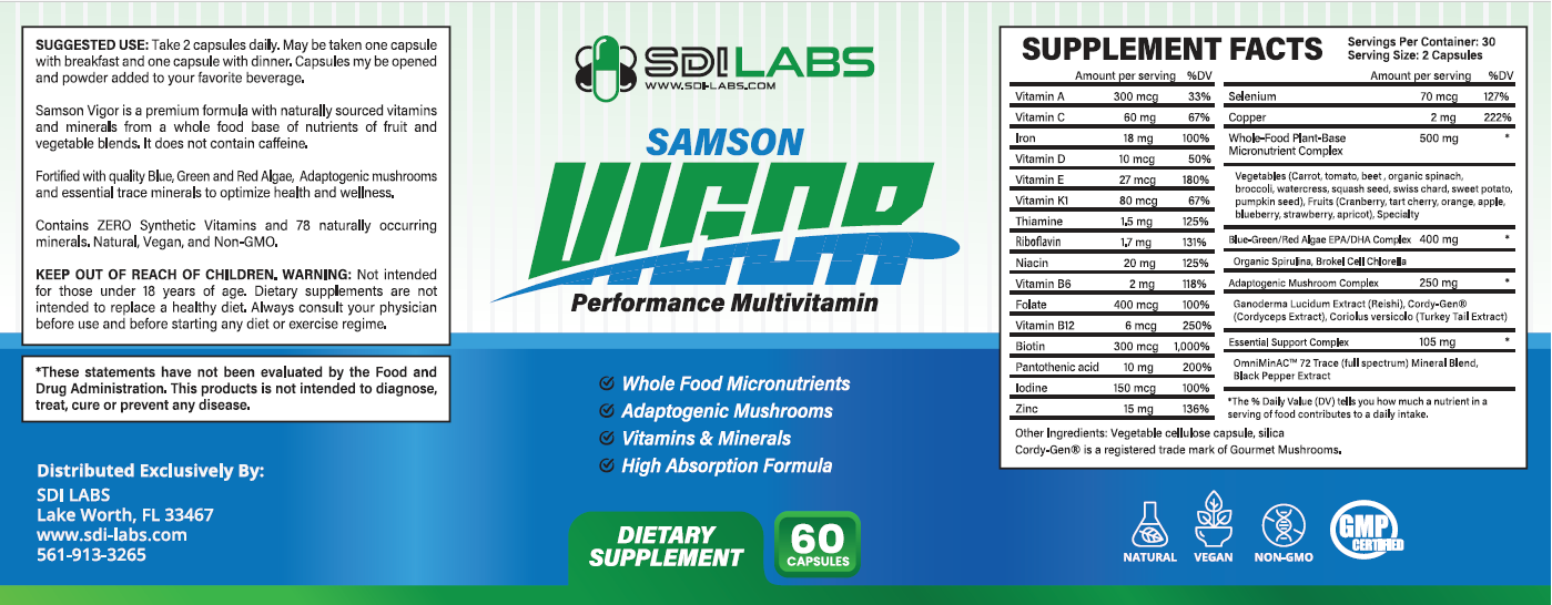 Formulated specifically for peak athletic prowess, Samson Vigor isn’t your average vitamin pill. It’s a powerhouse blend sourced from whole food micronutrients – think vibrant fruits, veggies, and superfoods like blue/green algae, berries, and spirulina – delivering nutrients in their most bioavailable, natural forms. No synthetic fillers or isolated chemicals here; just pure, nature-derived potency that your body recognizes and absorbs effortlessly.
